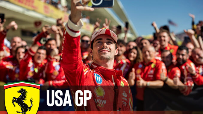 Podium champagne showers are BACK! #USGP 🇺🇸 #F1 pic.twitter.com/xf6JO2LHBB — Scuderia Ferrari HP (@ScuderiaFerrari) October 20, 2024 And here comes the selfie 🤳#USGP 🇺🇸 #F1 pic.twitter.com/hz6CPyHHmH — Scuderia Ferrari HP (@ScuderiaFerrari) October 20, 2024